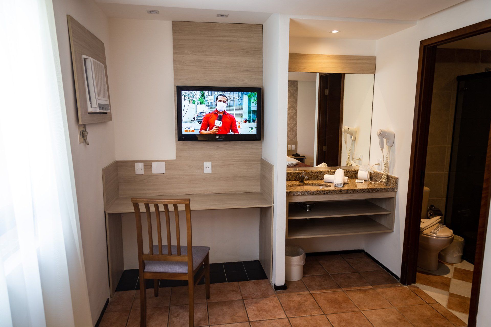 Apartamentos com uma área de 23m². Vista para a cidade. Piso em cerâmica. Acomodação em cama de casal ou duas de solteiro.